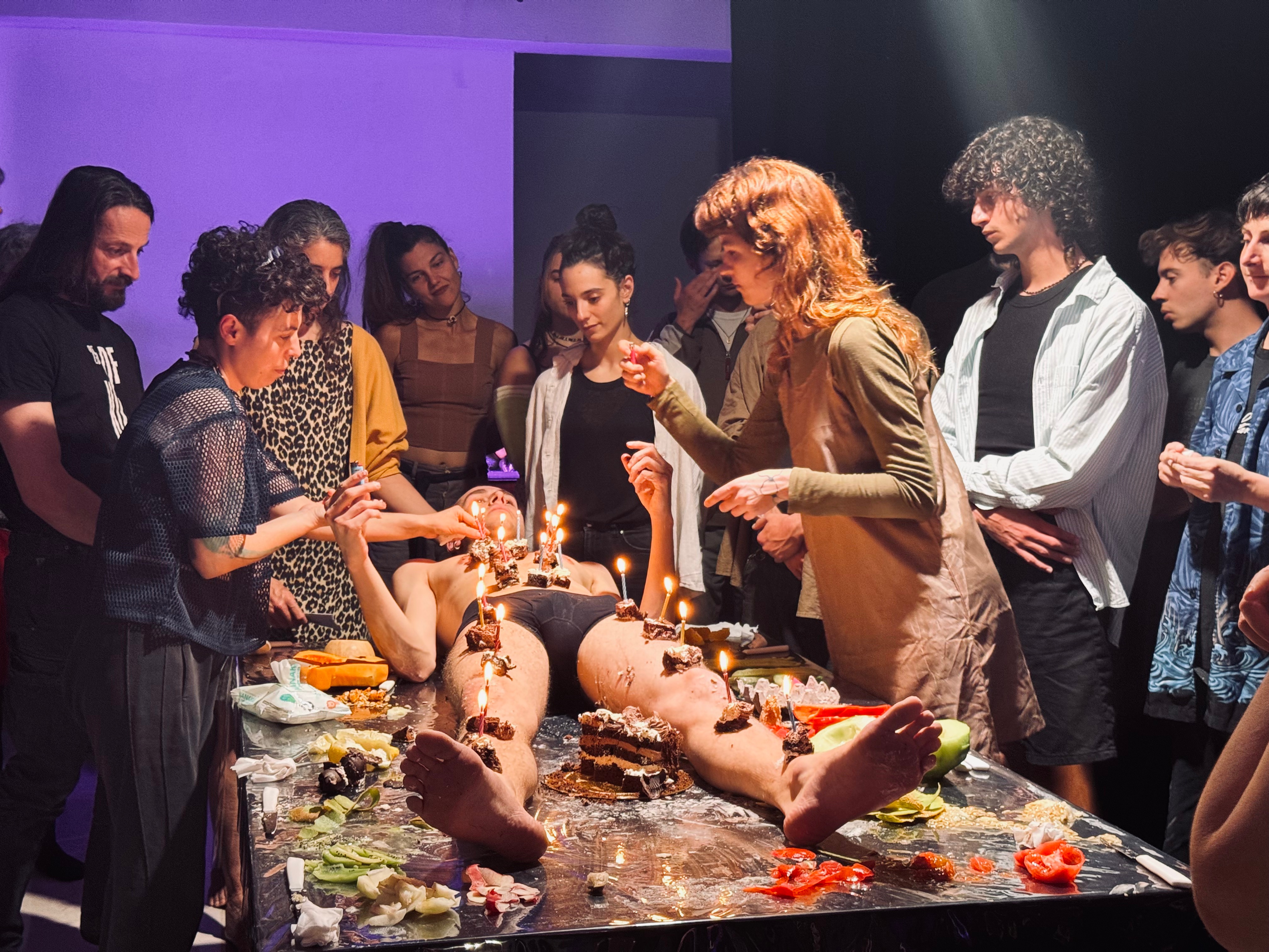 This is My Body is a participatory queer ritual that traces the history of the Eucharist in order to uncover the erotic, subversive and sacred meanings of breaking bread and drinking flesh and blood. Part-theatre, part-dance, part-ceremony, this show cracks open a pandora’s box of orgiastic rites and disordered feasting that lies just beneath the veneer of the world’s largest religion. It is an experiment in turning food into flesh and flesh into food that promises to be different every night.